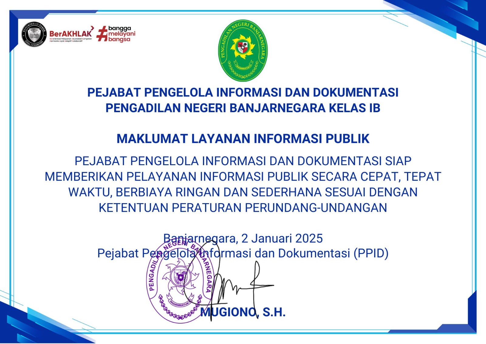 INFOSelamat datang di website resmi Pengadilan Negeri Banjarnegara Kelas IB