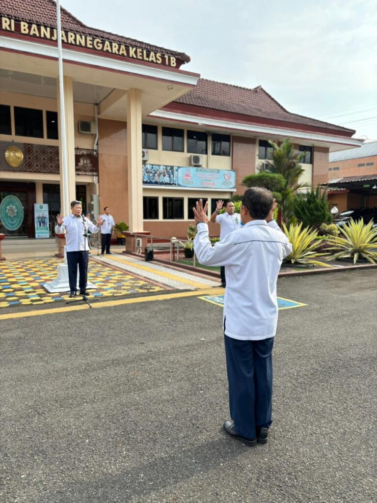 Banjarnegara – (06/04/2026): Pengadilan Negeri Banjarnegara melaksanakan apel pagi yang dipimpin oleh Wakil Ketua Pengadilan Negeri Banjarnegara, Bapak Christian Wibowo, S.H., M.Hum., selaku Pembina Apel, serta Bapak Bilal, S.H., selaku Komandan Apel. Apel ini dilaksanakan sebagai bentuk upaya untuk menanamkan kedisiplinan dan meningkatkan semangat kerja di awal pekan, sekaligus sebagai sarana untuk menyampaikan arahan dari pimpinan yang menjadi pedoman bagi seluruh aparatur Pengadilan Negeri Banjarnegara dalam melaksanakan tugas dan tanggung jawab.