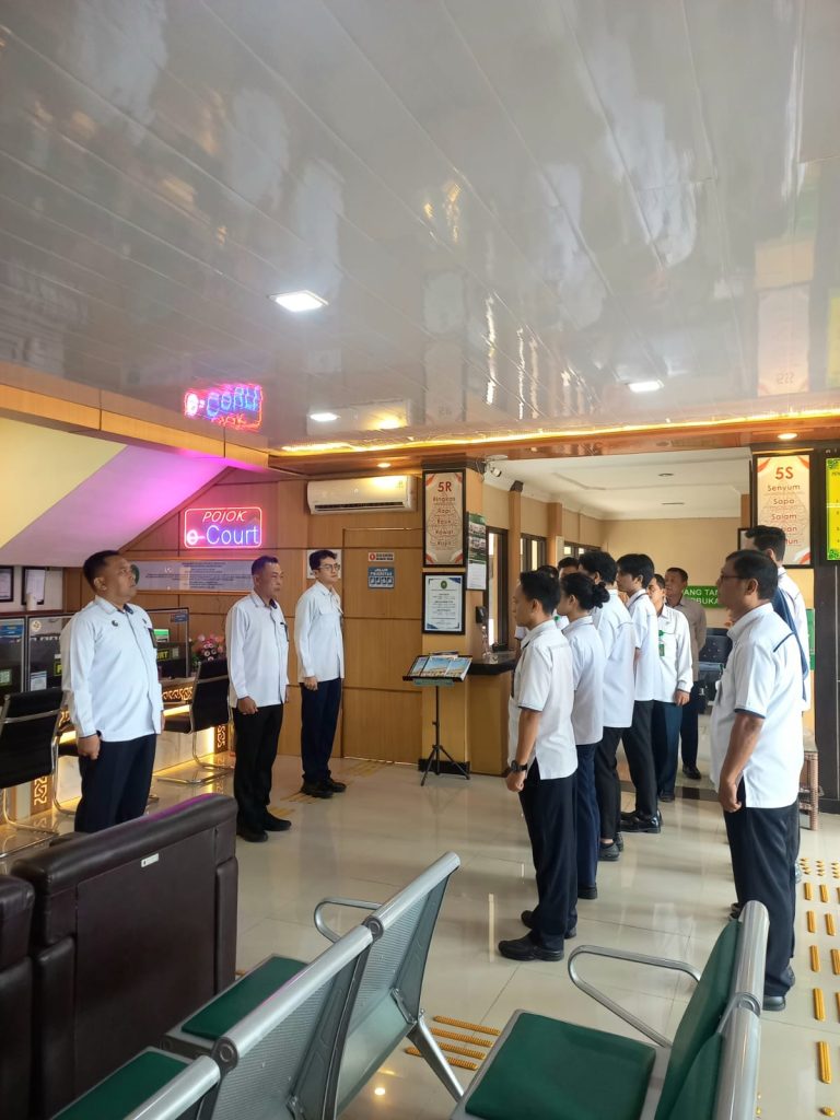 Banjarnegara – (28/07/2025): Pengadilan Negeri Banjarnegara melaksanakan briefing untuk petugas Pelayanan Terpadu Satu Pintu (PTSP) yang dipimpin oleh Bapak Arief Wibowo, S.H., M.H. sebagai Hakim Pengawas PTSP, Panitera Bapak Suhartono, S.H., M.H. dan Sekretaris Bapak Adhi Anggri Heru Soewarno, S.E., M.M. Kegiatan ini bertujuan untuk mengevaluasi kinerja petugas, membahas kendala yang dihadapi dan merumuskan solusi guna meningkatkan efektivitas pelayanan.