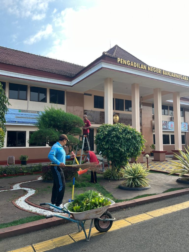 Banjarnegara – (25/07/2025): Pengadilan Negeri Banjarnegara melaksanakan kegiatan rutin yang dikenal dengan nama “Jum’at Bersih.” Kegiatan ini bertujuan untuk menjaga kebersihan dan keindahan lingkungan sekitar kantor. Seluruh pegawai, mulai dari pimpinan hingga staf, berpartisipasi aktif dalam membersihkan halaman depan kantor. Dengan semangat kebersamaan, mereka melakukan berbagai aktivitas, seperti menyapu, merapikan tanaman, dan mengumpulkan sampah. Kegiatan ini tidak hanya menciptakan lingkungan yang lebih bersih, tetapi juga meningkatkan rasa kepedulian terhadap lingkungan di kalangan pegawai.
