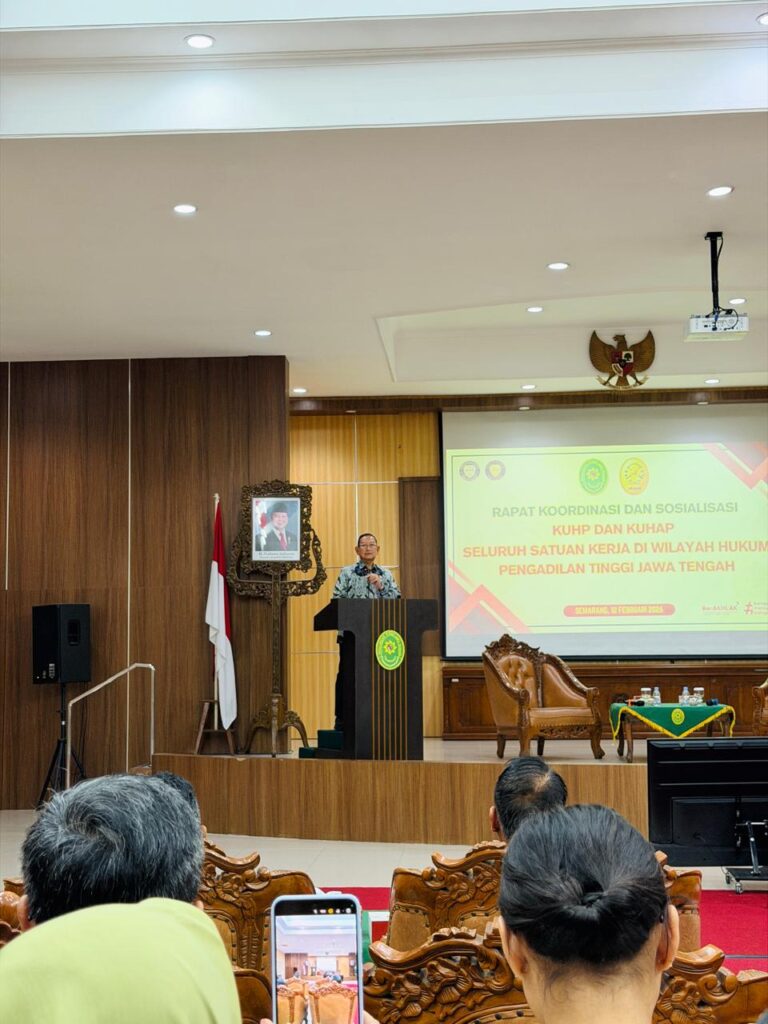 Banjarnegara – (12/02/2026): Ketua Pengadilan Negeri Banjarnegara, Bapak Anteng Supriyo, S.H., M.H., menghadiri Undangan Pelantikan Wakil Ketua Pengadilan Tinggi Jawa Tengah serta mengikuti kegiatan Rapat Koordinasi dan Sosialisasi Undang-Undang Nomor 1 Tahun 2023 Tentang Kitab Undang-Undang Hukum Pidana (KUHP) dan Undang-Undang Nomor 20 Tahun 2025 Tentang Kitab Undang-Undang Hukum Acara Pidana (KUHAP) pada Pengadilan Tinggi Jawa Tengah.