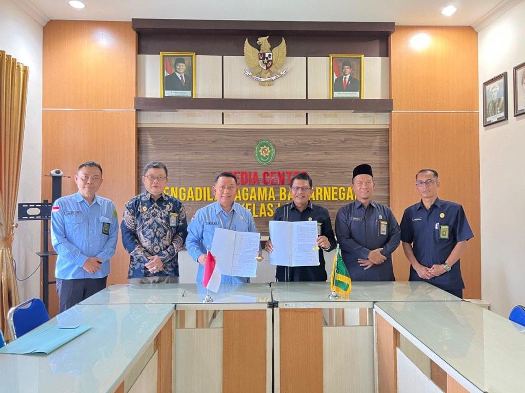 Banjarnegara – (15/01/2025): Bertempat di Ruang Media Center Pengadilan Agama Banjarnegara, Ketua Pengadilan Negeri Banjarnegara Bapak Anteng Supriyo, S.H., M.H. dan Ketua Pengadilan Agama Banjarnegara Bapak Drs. Azmir, S.H., M.H. menandatangani Surat Keputusan Bersama tentang Penetapan Panjar Biaya Perkara pada kedua badan peradilan. Keputusan tersebut keluarkan dalam rangka mewujudkan biaya pelayanan yang transparan, terukur dan terjangkau bagi masyarakat pencari keadilan.
